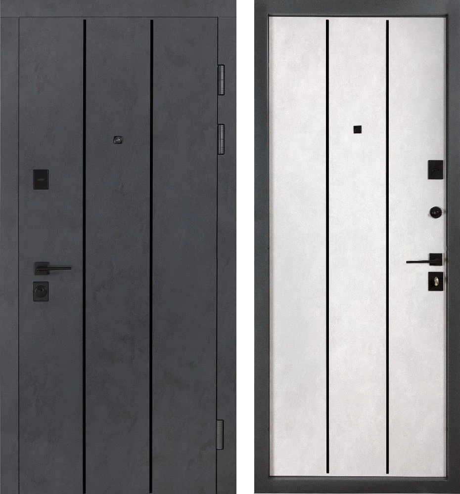 Двери входные метал Ультра (квадро) 535 Бетон антрацит/Бетон снежный (Кале) 850мм